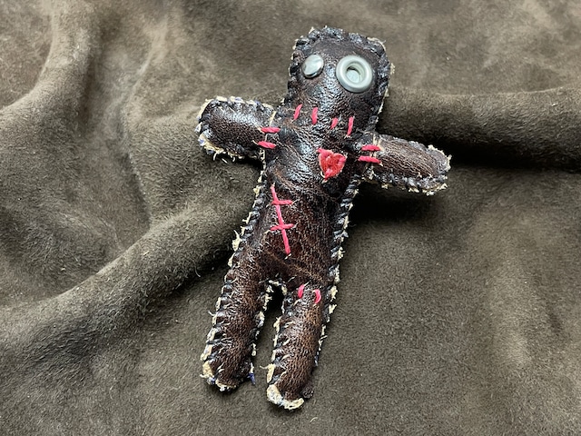 手縫いで制作している革製のミニチュアブードゥードール<呪物くん>です。 艶有りのワイルドなバッファローレザーを使って作っています。 ブードゥー人形とも呼ばれ、人の形をしていてハートの目印が付いているのが特徴です。 呪物として呪いに使われた…とも言われていますが今は正式に呪いのアイテムではないと表明が出ています。 映画やメディアの影響で伝わったイメージが多いですが、現在は願掛けや厄除けのお守りとして持つことが多くなっています。 あくまで呪物風のファッション雑貨としてお楽しみください。 基本仕様は緊縛(亀甲)+キーホルダーになります(白呪物くん参考) 緊縛用の麻紐の色は11種類から選択が出来るようになりました。 ご購入の際に、希望の色をお伝えください。 特にご希望の色指定がない場合はナチュラルorベージュ(在庫状況によりランダム)になります。 ソフトレザーを使って作っているため、とても柔らかく作っています。 硬さと厚みがあるヌメ革での制作は向いていません。 本来は×印が付いている部分はシェイプで抜いたハートを縫い付けているので可愛らしい印象です。 オリジナル仕様の×印もオーダーでは可能です。 また、両腕と首の部分はつぎはぎで縫い付けているため、別素材や色を使う事も可能です。 キーホルダー以外では、オプションで帽子ピン、カブトピン(ブローチ)、ピアスフック加工も可能ですのでご購入前にご相談ください。 最後の写真は参考写真です。 さざれ水晶の半身浴で浄化済です。 中には綿がたくさん詰まっているためぷにぷにで可愛らしい仕上がりになっています。 色などによって願掛けの意味がそれぞれ変わるとも言われています。 一例ですが 赤 … 行動力、情熱や自信、自分の強さ ピンク … 愛情、優しさや気持ち、恋愛 黄色 … 無邪気、明るさや今後の希望、開放感 緑 … 癒し、安定や平和、疲れを解消 水色 … 開放感や自由、爽快感 青 … 誠実さや冷静さ、直感 紫 … センスやクリエイティブ、優雅さ 茶色 … 落ち着きや堅実さ、地道さ 薄茶 … 自然体や穏やかさ、優しさ 白 …純粋さや神聖さ、決断力 グレー … 平常や中立、無難さ 黒 … 集中や正統な判断、存在感 など、色々な意味があります ※願掛けや厄除け、お守りなどは科学的な根拠は無く、民俗的な民間伝承の一種としてお楽しみください。 この商品の受注制作用ベース商品ページはこちらになります https://shop.kabocha-heads.com/items/83621759 自分用はもちろん、母の日、父の日、入社祝い、入学祝い、誕生日祝い、クリスマス、彼氏、彼女への記念日や、新生活に向けた各種プレゼントにも喜ばれるアイテムになっています。 革製品に関しての特性、ご注意などは【紹介・ご注意】をお読みください。 →https://shop.kabocha-heads.com/about 型紙から制作しているので、1からのオーダーメイド制作も可能です。 サイズや機能面から、または予算に応じたものをご提案も可能です。 ベース価格はあくまで牛ヌメ、豚ヌメを使用した場合の基準価格ですので、素材により価格は変動します。 詳細はオーダーメイドのまとめページをご覧ください。 http://kabocha-heads.com/order 素材の詳細や在庫などは下記の【カスタマイズ項目に関して】をご覧ください。 変更可能なカラーや素材に関しては、お気軽にお問い合わせ下さい。 また、折りや曲げに不向きな素材(ワニの背中など)では制作できないアイテムもあります。 ※制作している商品にはすべて刻印が入っています。 ※閲覧環境により、掲載写真と実際の色に誤差がある場合があります。 ※品切れ商品の再販希望の場合はメッセージなどでご連絡ください。 ■対象 男性向け、女性向け、学生向け、社会人向け、大人向け ■サイズ 約50×75 (mm) ■素材 バッファロー