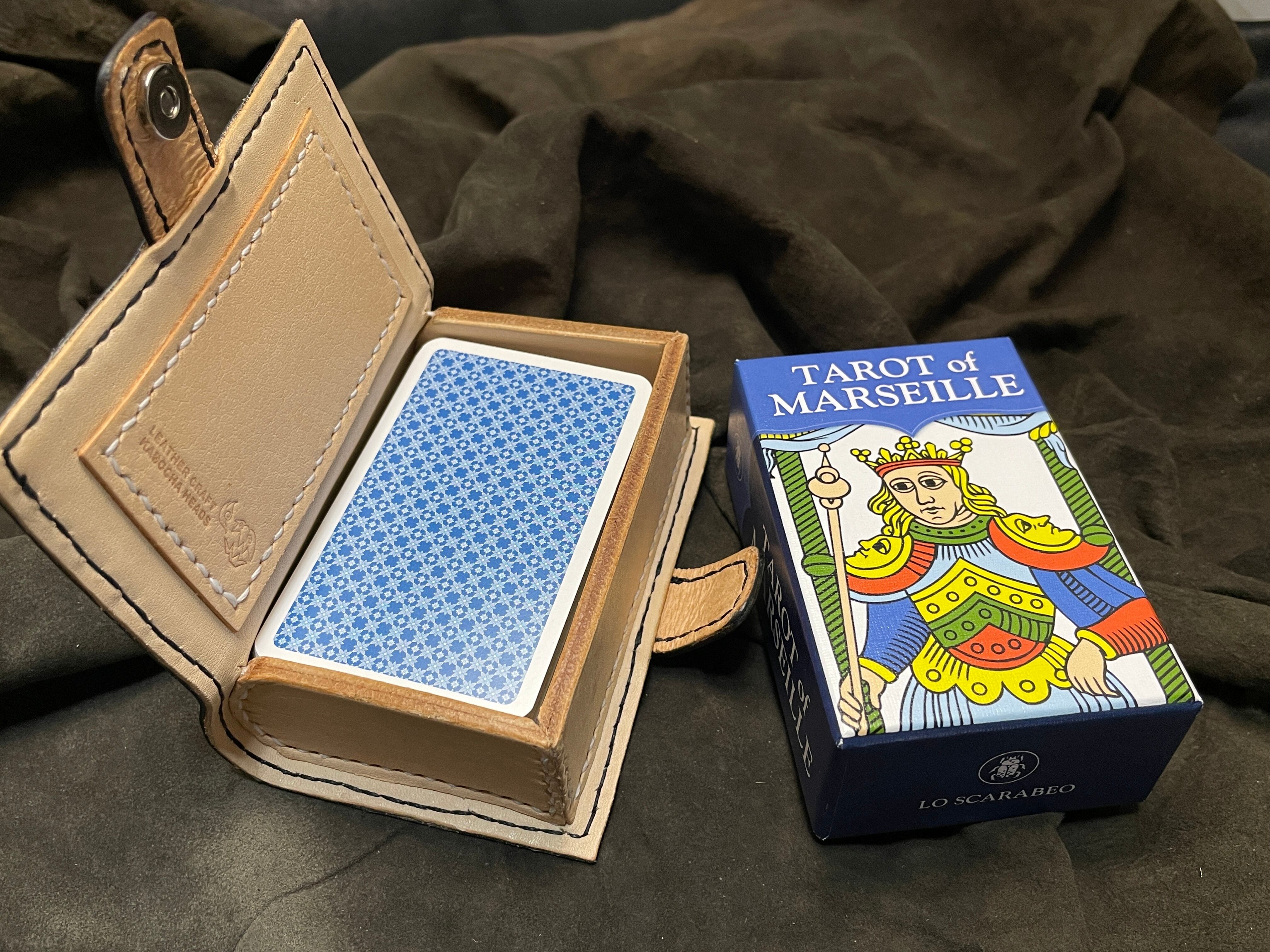 Grimoire minは収納できるサイズは80×44mmサイズに対応していますので、ロスカラベオ社の旧ミニサイズ以下のタロットカードが収納可能です