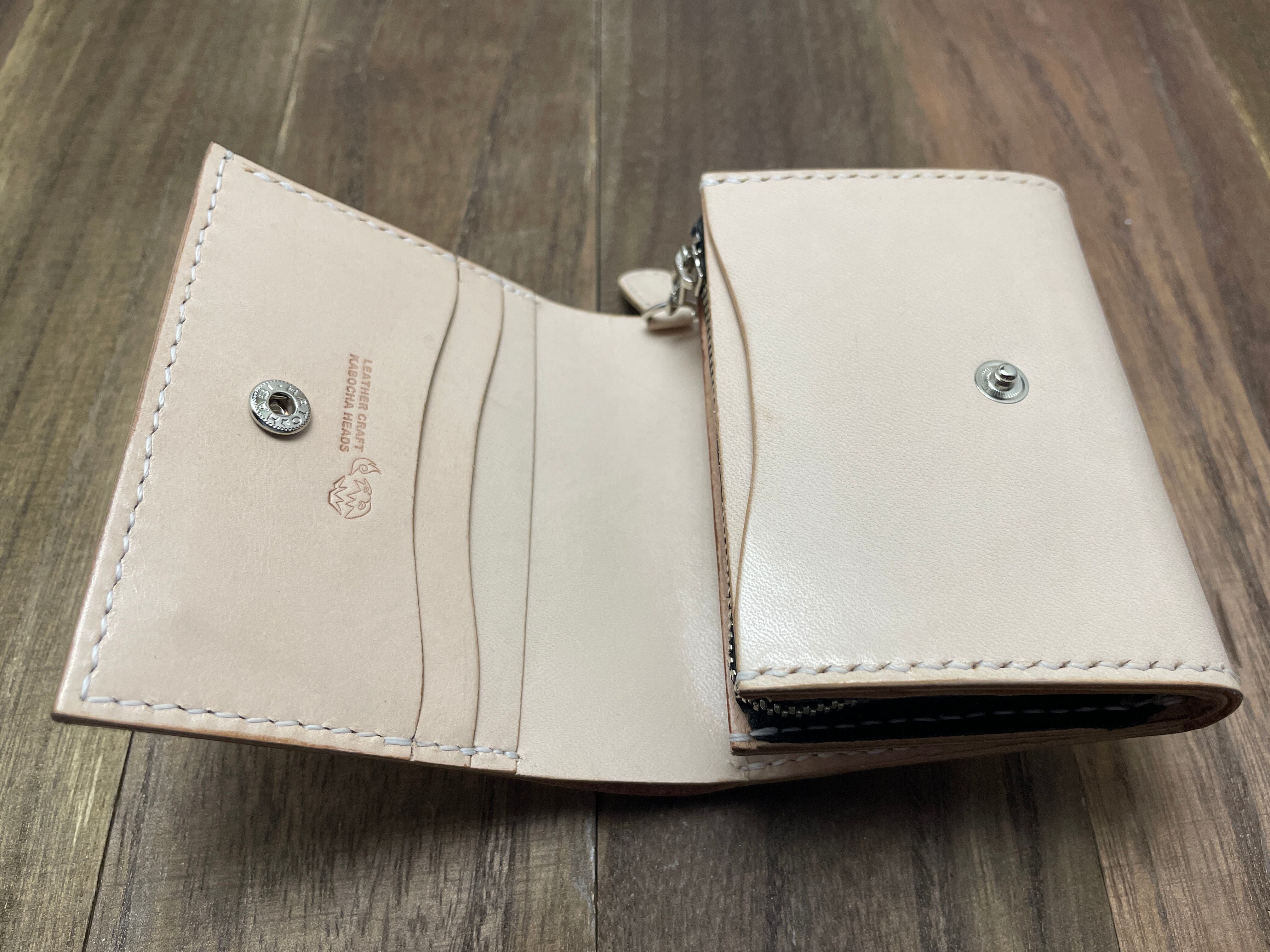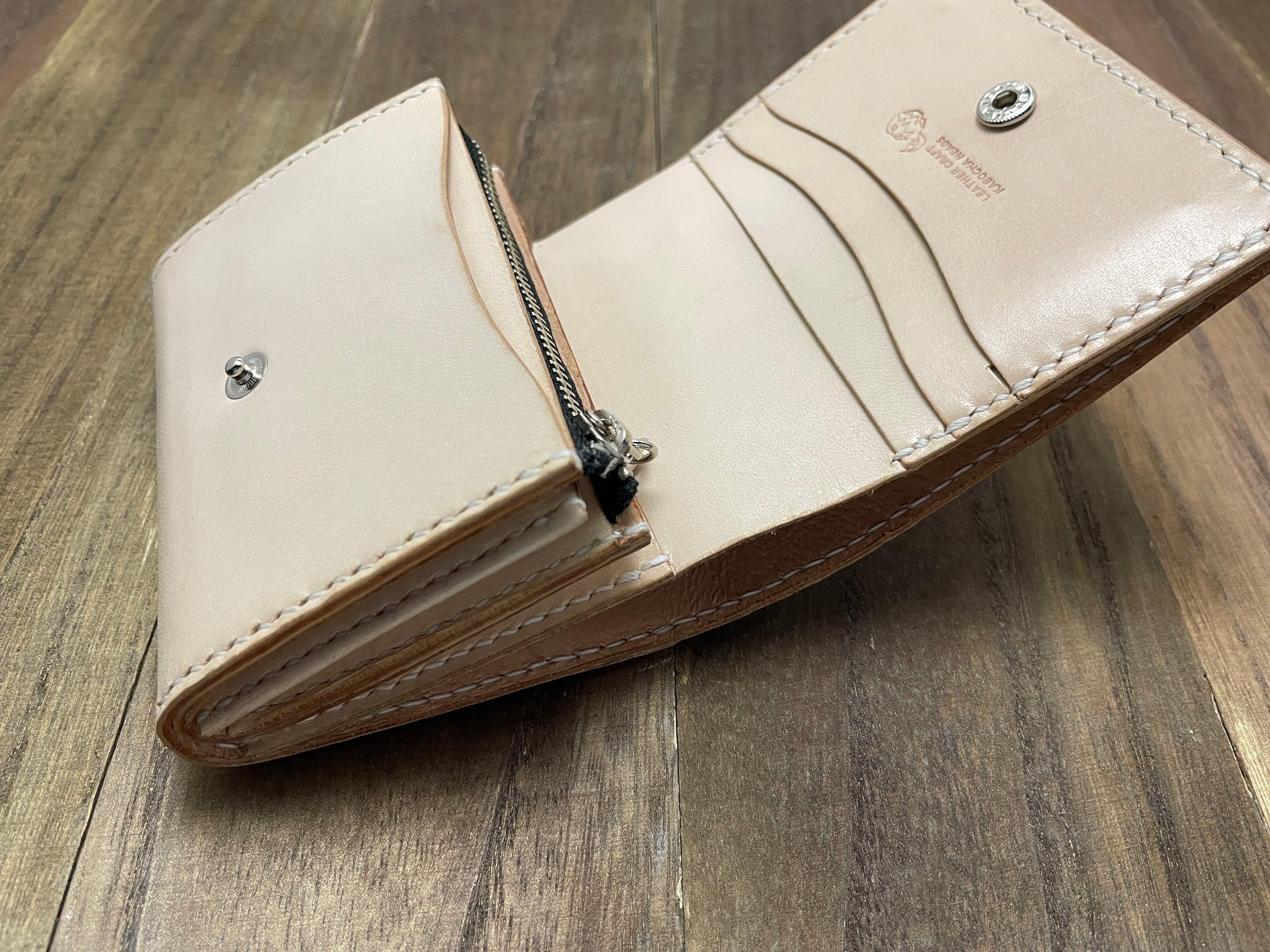 全て手縫いで作っているかぶせタイプのハーフサイズウォレットです。