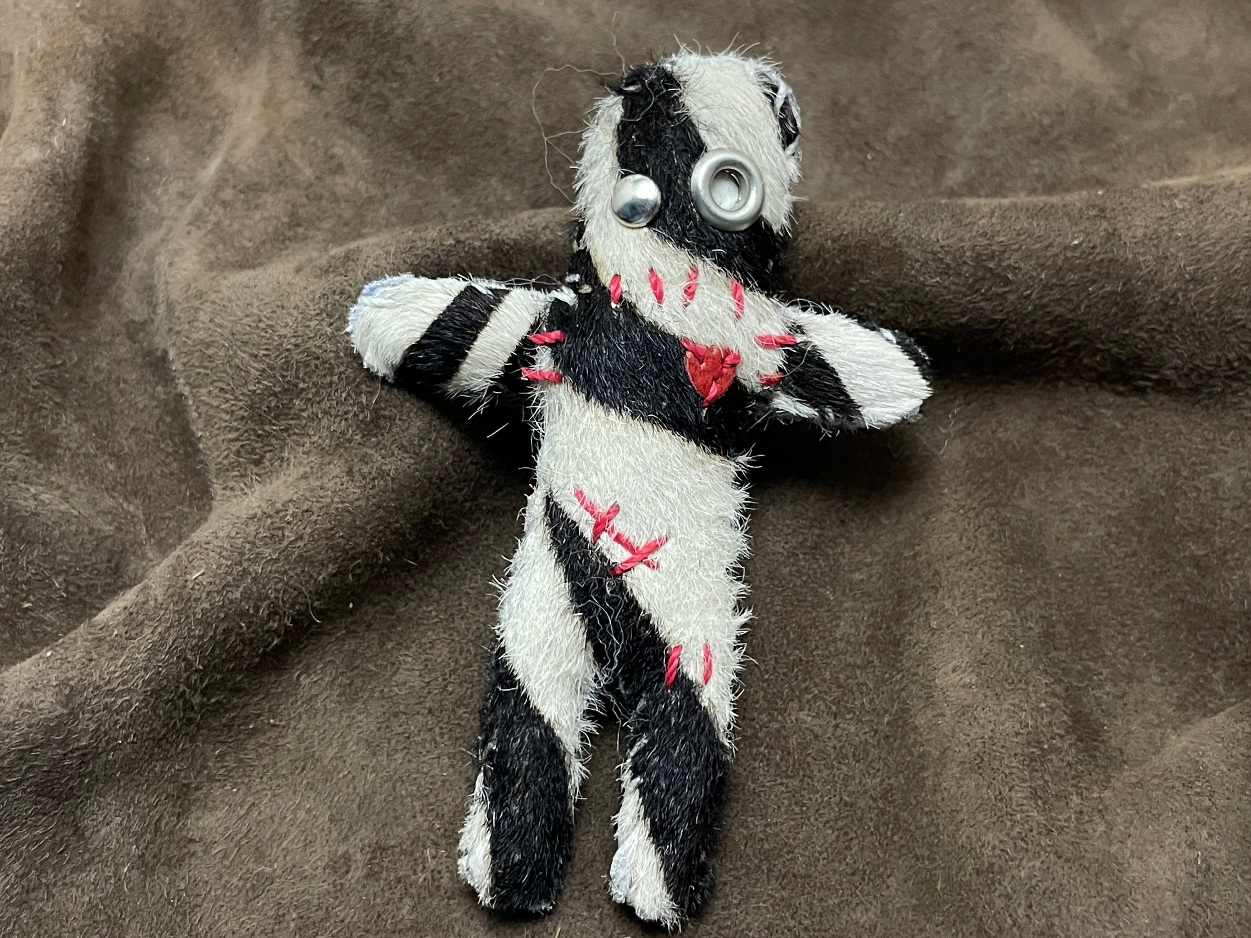 牛毛付き革のブードゥードール毛呪物くん(ゼブラ柄)