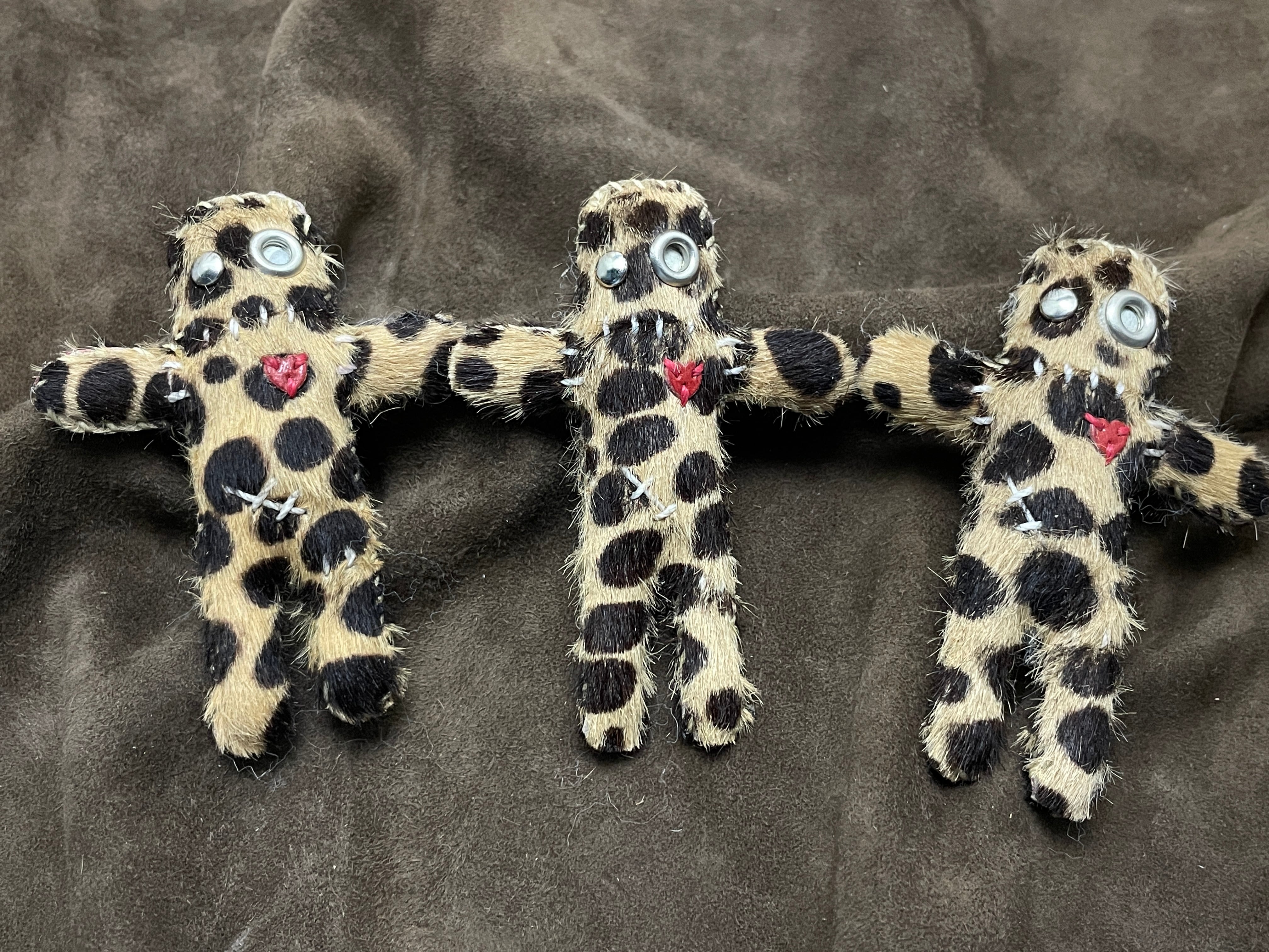 牛毛付き革のブードゥードール 毛呪物くん(チーター柄)