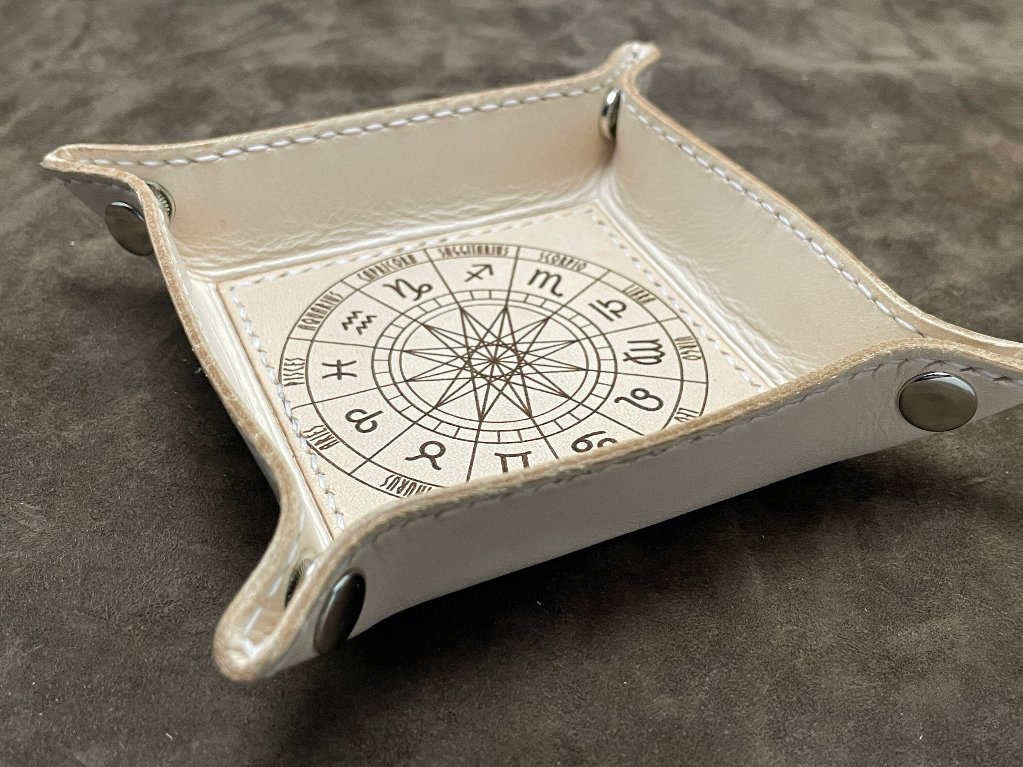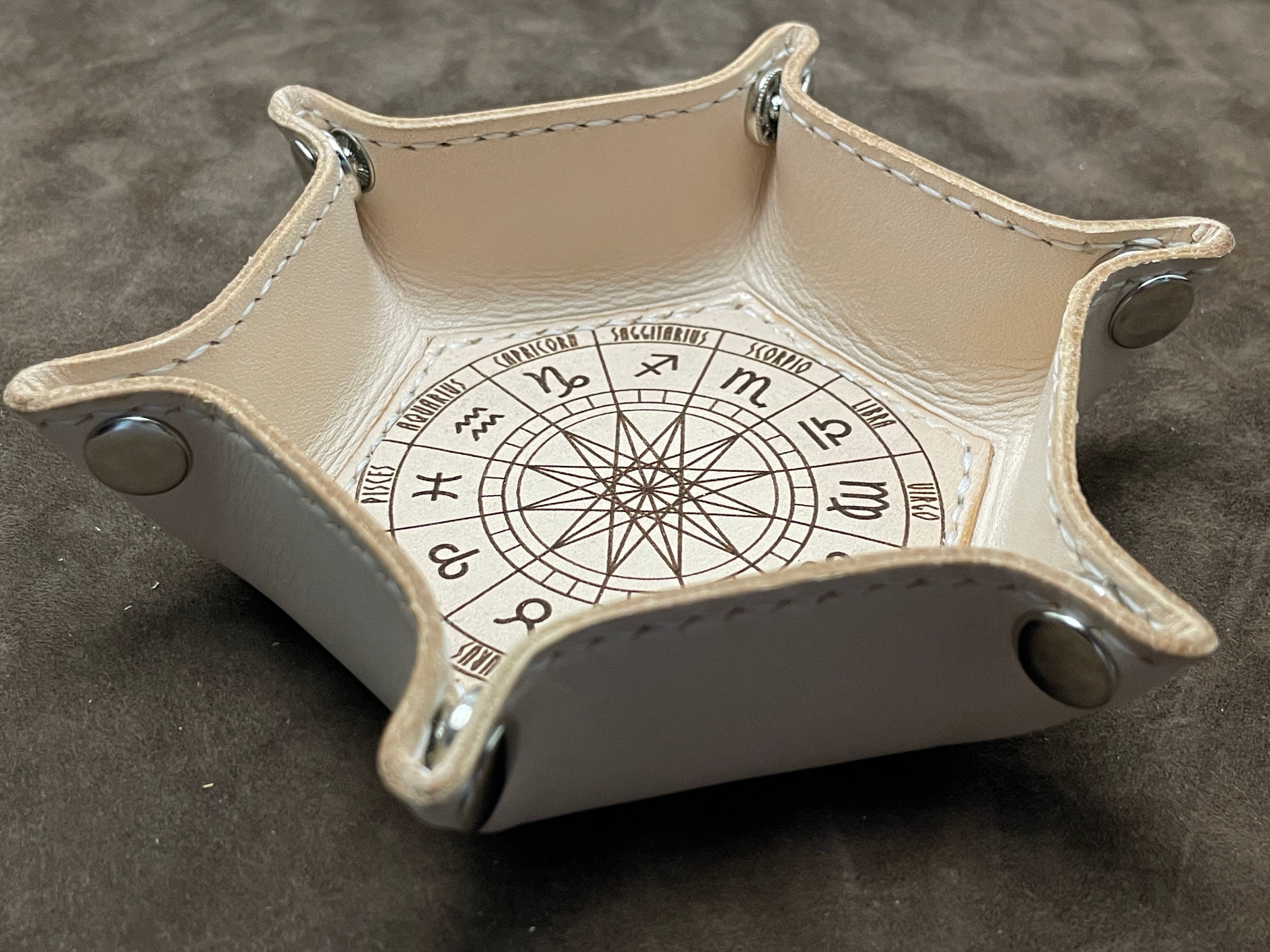 参考としては、ルーン用にヴァイキングコンパス、アストロダイス用に12星座盤のモチーフなどをレーザー彫刻することも可能です