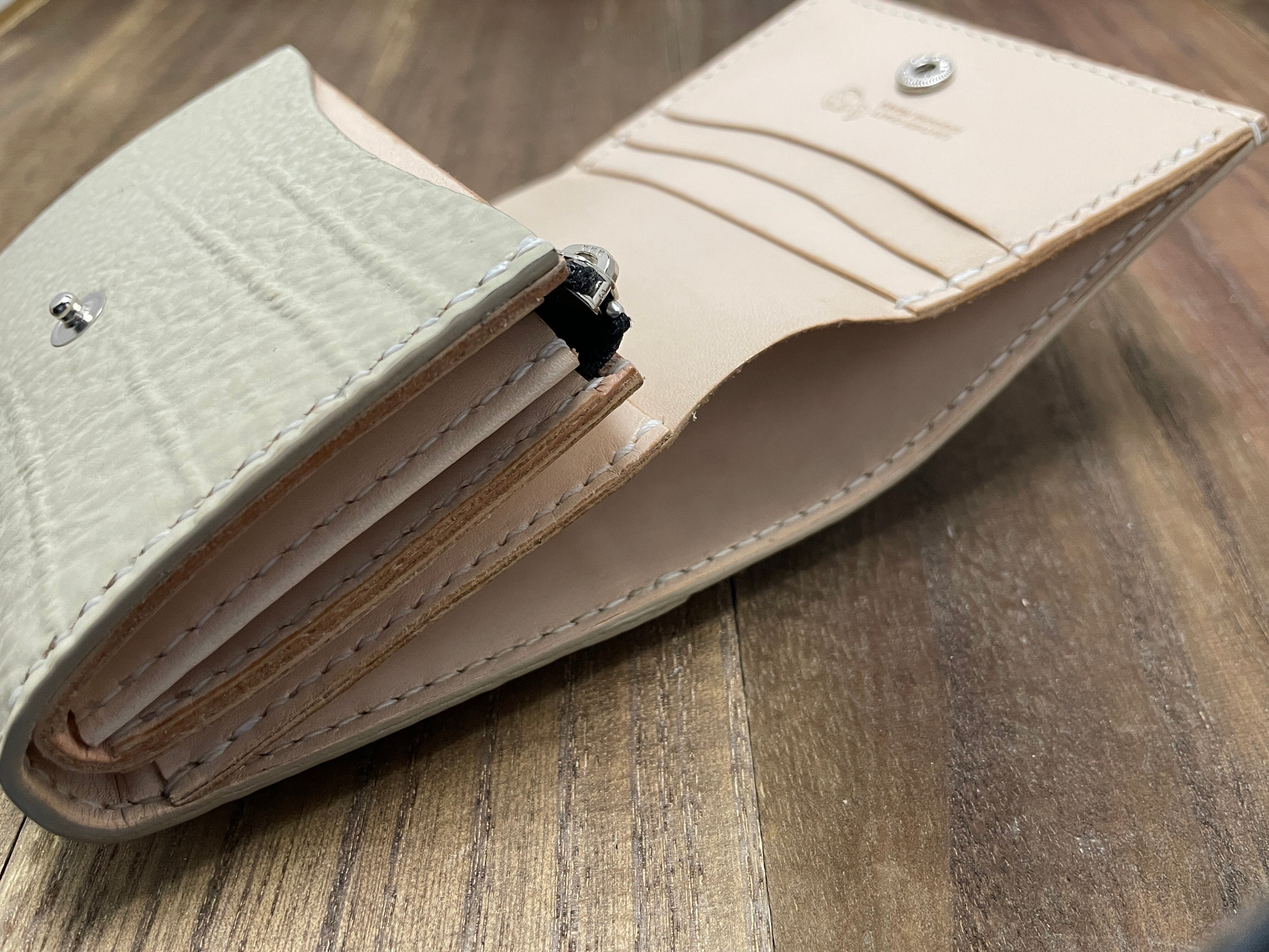 シャーク(サメ革)、牛ヌメ、豚革(小銭入れ内側)