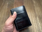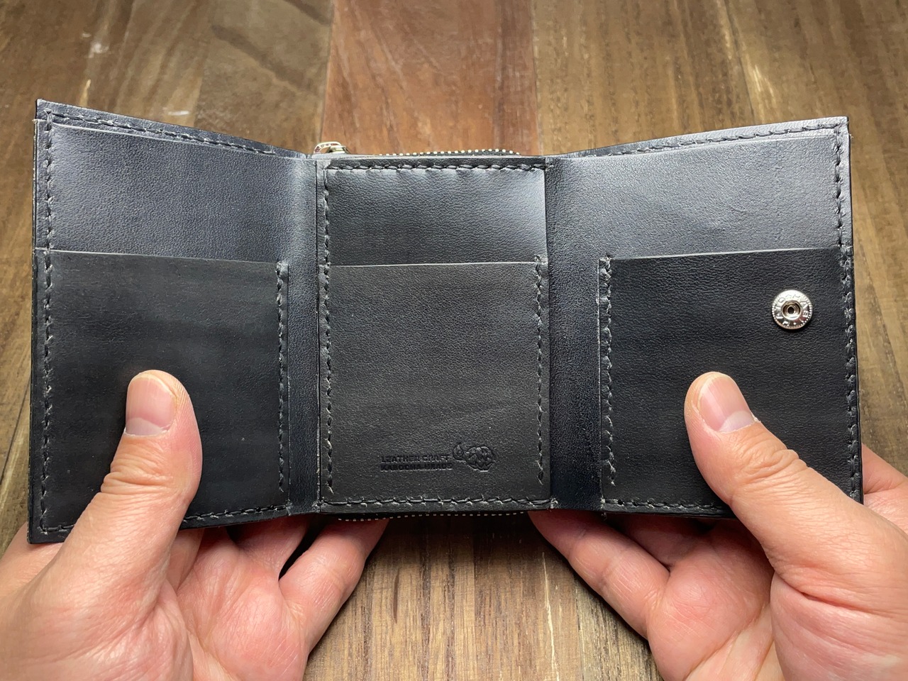 とても小さくシンプルに見えますが、同サイズの財布に比べて収納能力は高く、多くのカードや小銭が入ります。