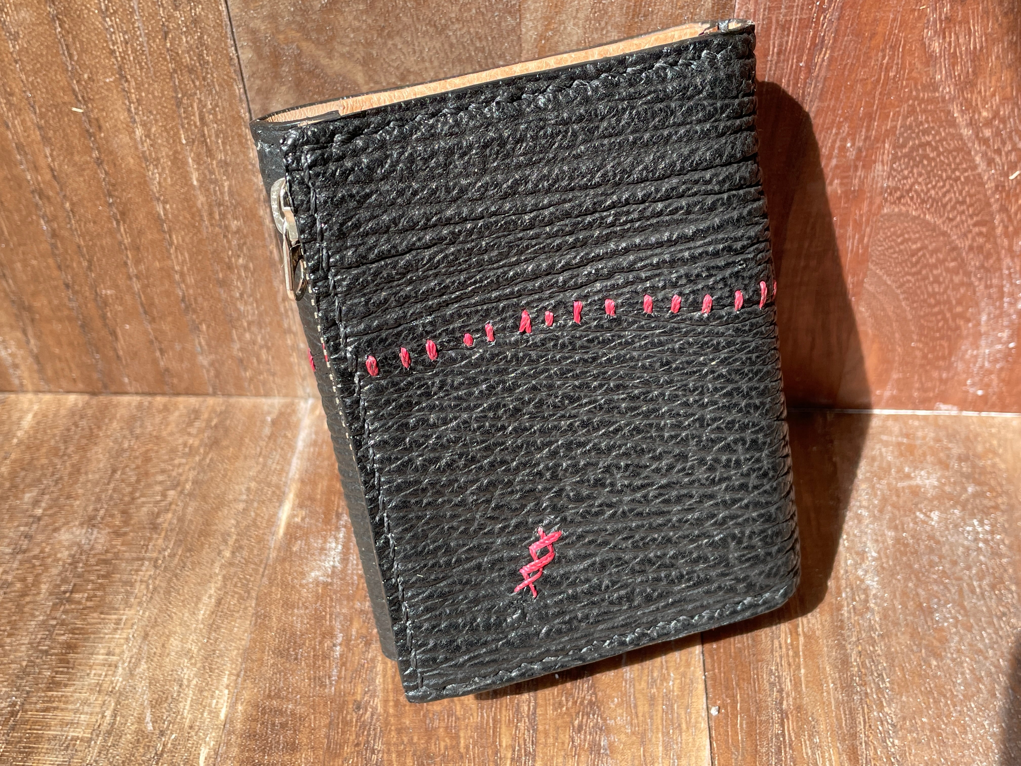 サメ肌というイメージの革ではなく、ウロコなどはありませんが、やわらかくコシがあり、丈夫な素材です。
